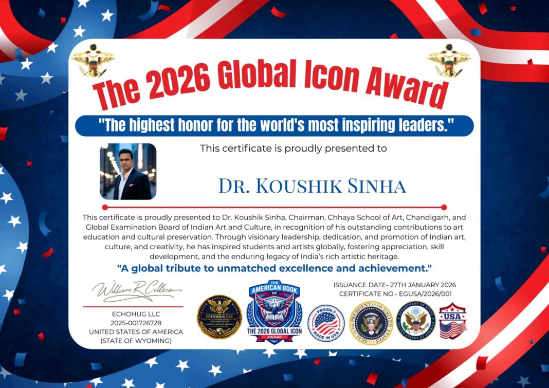 The 2026 Global Icon Award stands as a global tribute to Dr. Koushik Sinha’s unmatched excellence and achievements. It reaffirms his position as a torchbearer of Indian art and culture and recognizes his enduring contribution to shaping future generations of artists. As his work continues to influence the global art community, this honor marks not just a milestone in his career, but a proud moment for Indian art and cultural heritage on the world stage.
